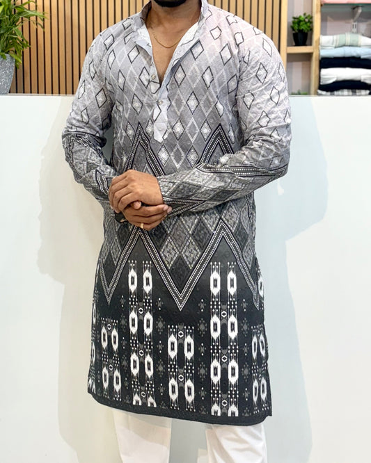 Geometric Motif Cotton Kurta With Crochet & Digital Print