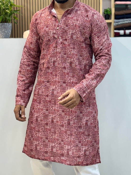 Sold outPrinted Crochet Kurta Dusty Maroon
