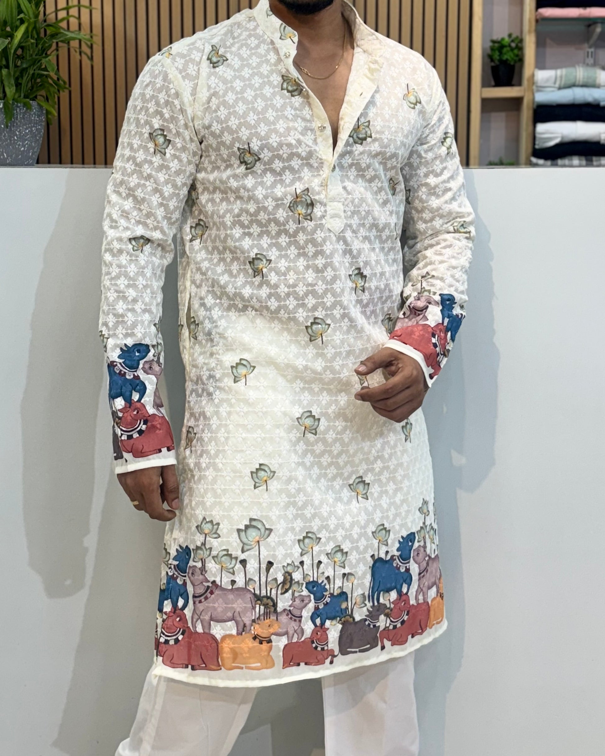 Style: Straight shape with a regular fit, often worn for ethnic or casual occasions